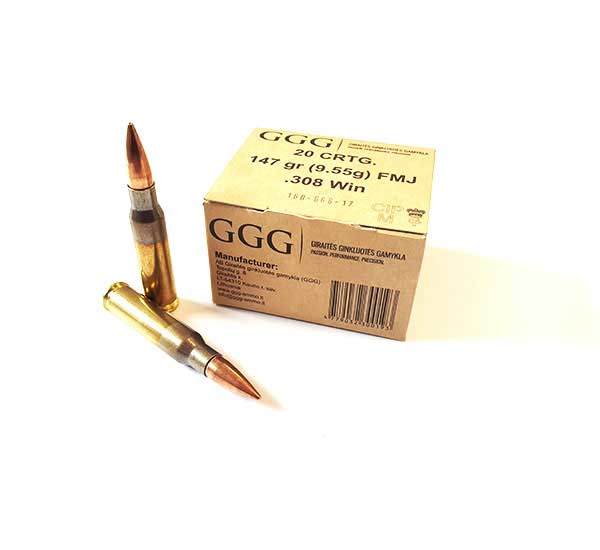 Amunicja GGG kaliber .308Win dedykowana jest dla strzelców sportowych, myśliwych i miłośników strzelectwa. Dzięki atrakcyjnej cenie stała się doskonałą amunicją do strzelań sportowych, swymi parametrami dorównując swej droższej konkurencji. Pocisk GGG FMJ (147 gr / 9,55g).